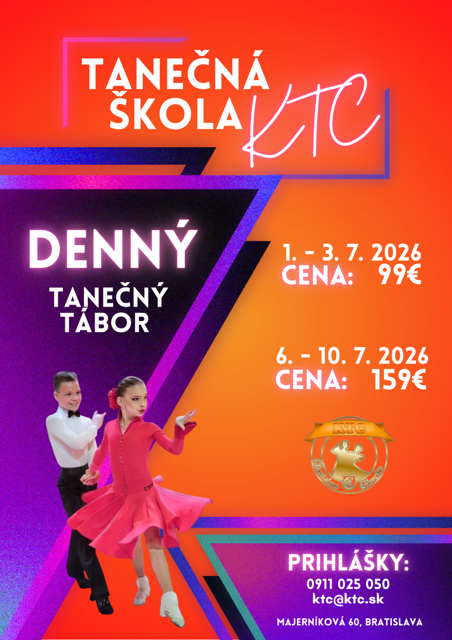 1. turnus: 1.7. – 3.7.2026 (od stredy do piatka v tanečnom centre KTC na Majerníkovej 60)